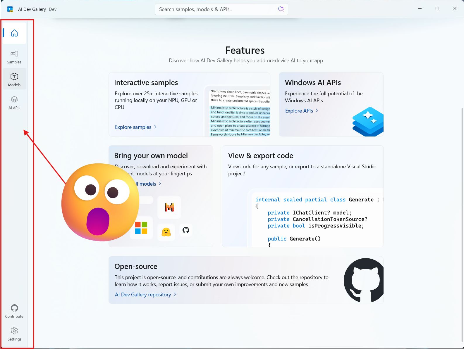I wanted to build my next app in WinUI, and I wanted to have a rail menu, with big clickable icons that would navigate to a different page. AI Dev Gallery has a great example of this, and fortunately it is all open-source. In this post I will show you how you can replicate this in your own WinUI app.